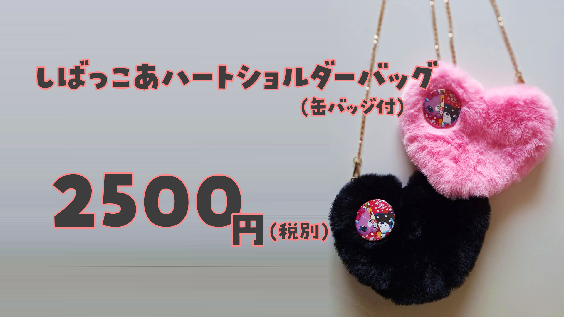 ハートショルダーバッグ しばっこあ缶バッヂ付き 各2500円(税別)